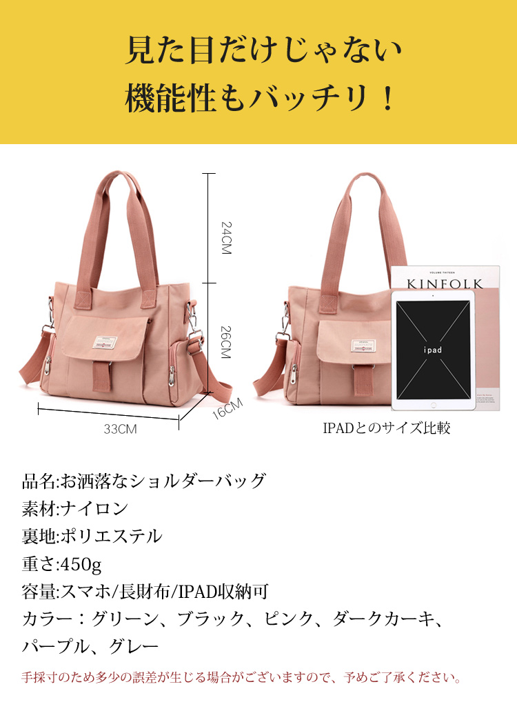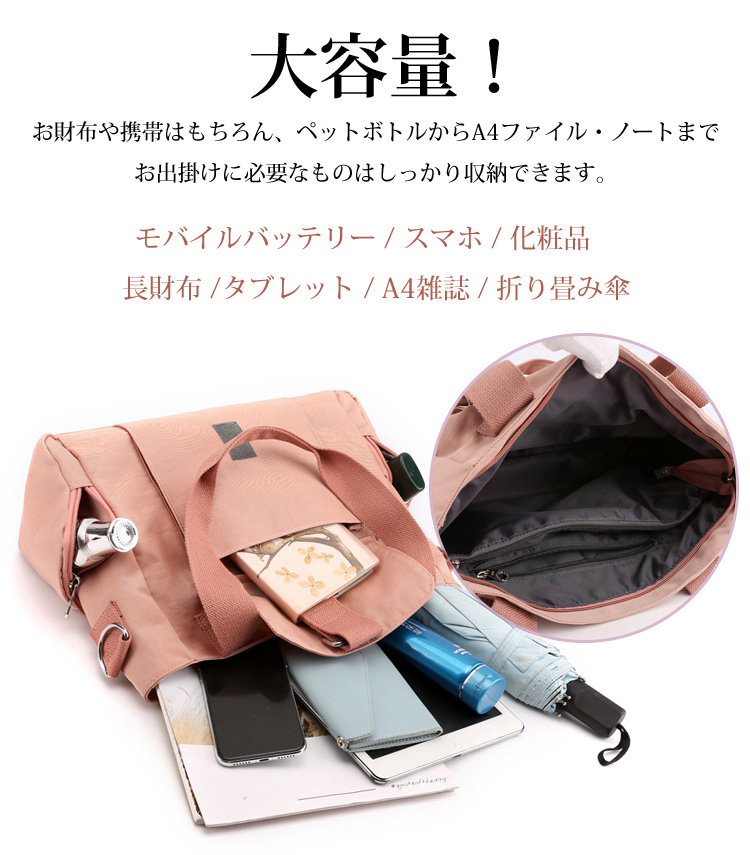 【お洒落なショルダーバッグ】大容量!見た目だけじゃない 機能性もバッチリ!雨の日も安心!