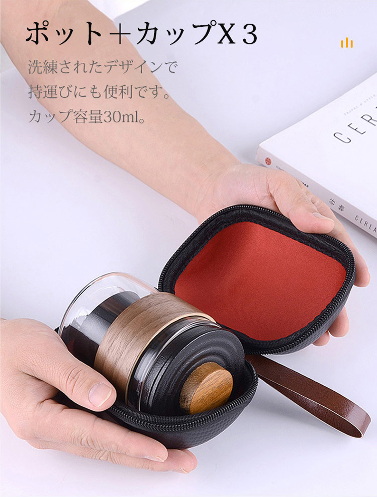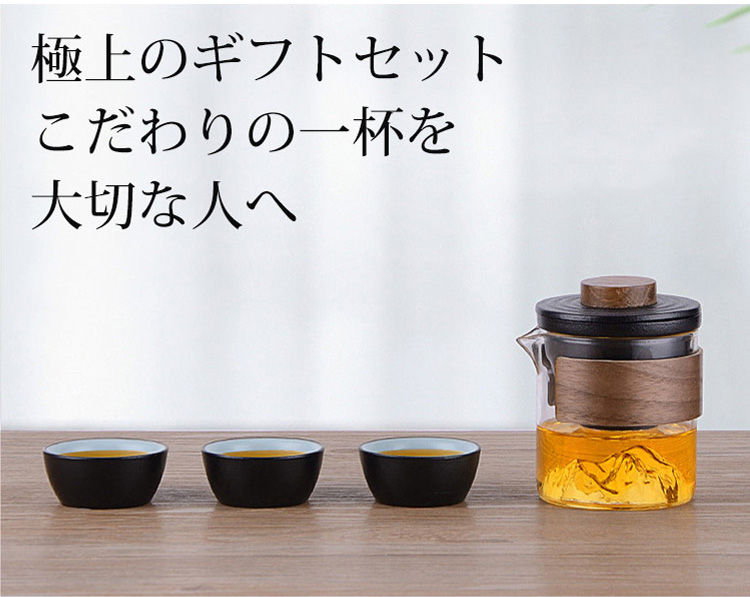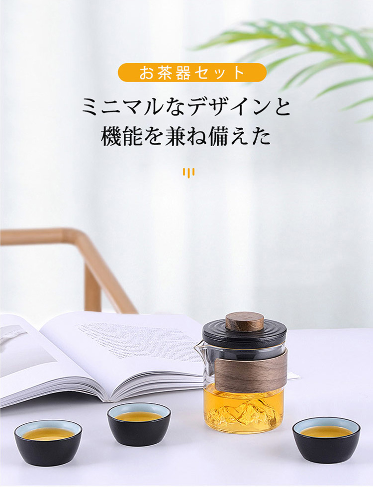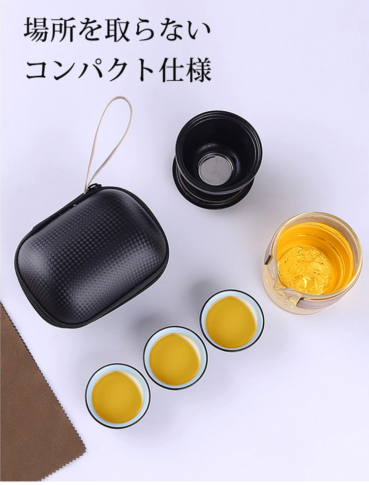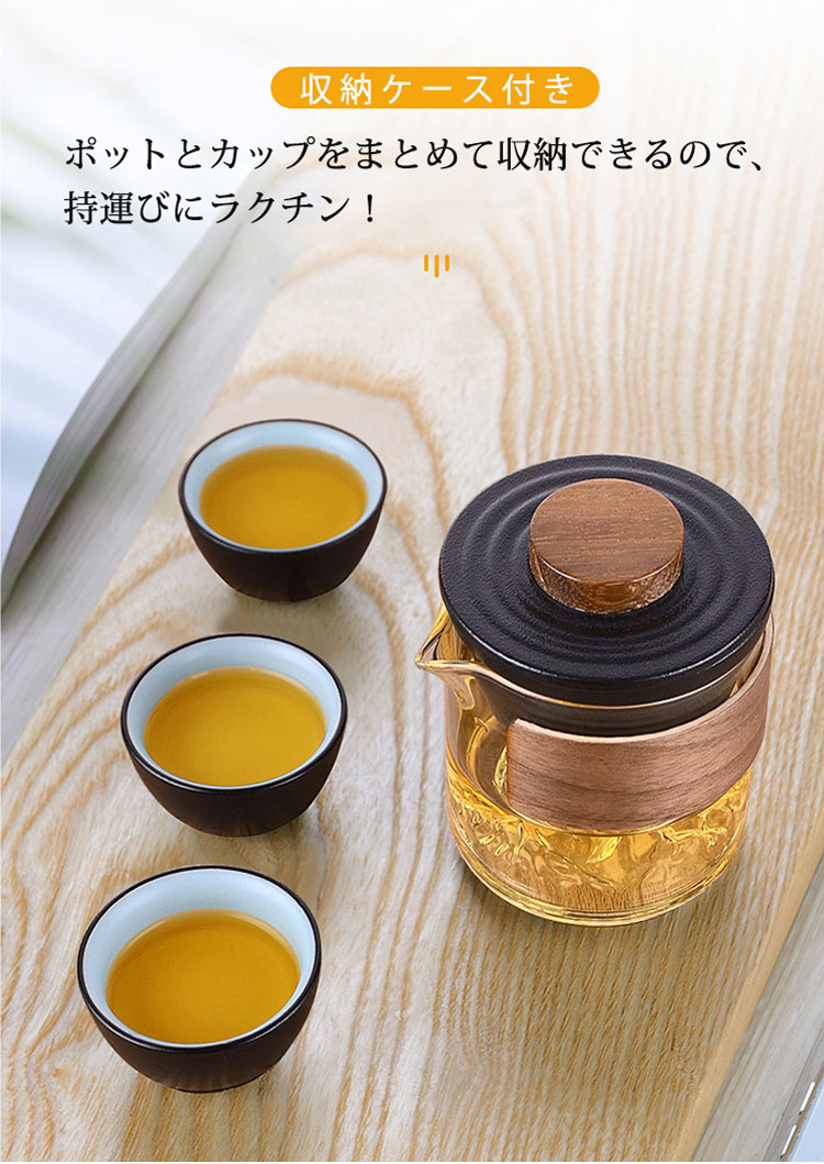 【お茶器セット】ポット+カップX3、まとめて収納、場所を取らない コンパクト仕様