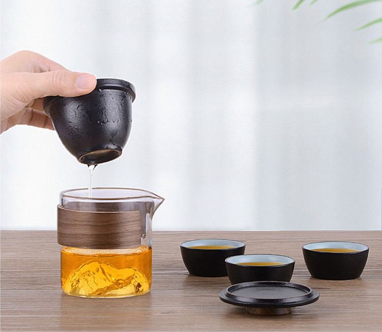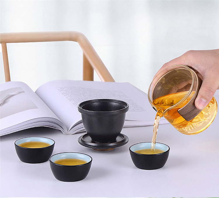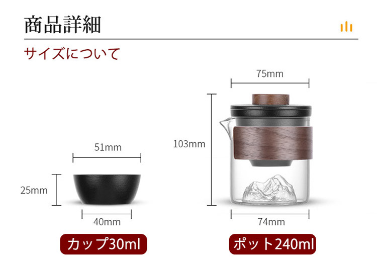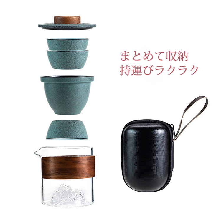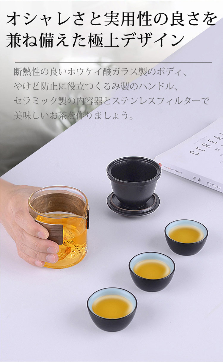 【お茶器セット】ポット+カップX3、まとめて収納、場所を取らない コンパクト仕様